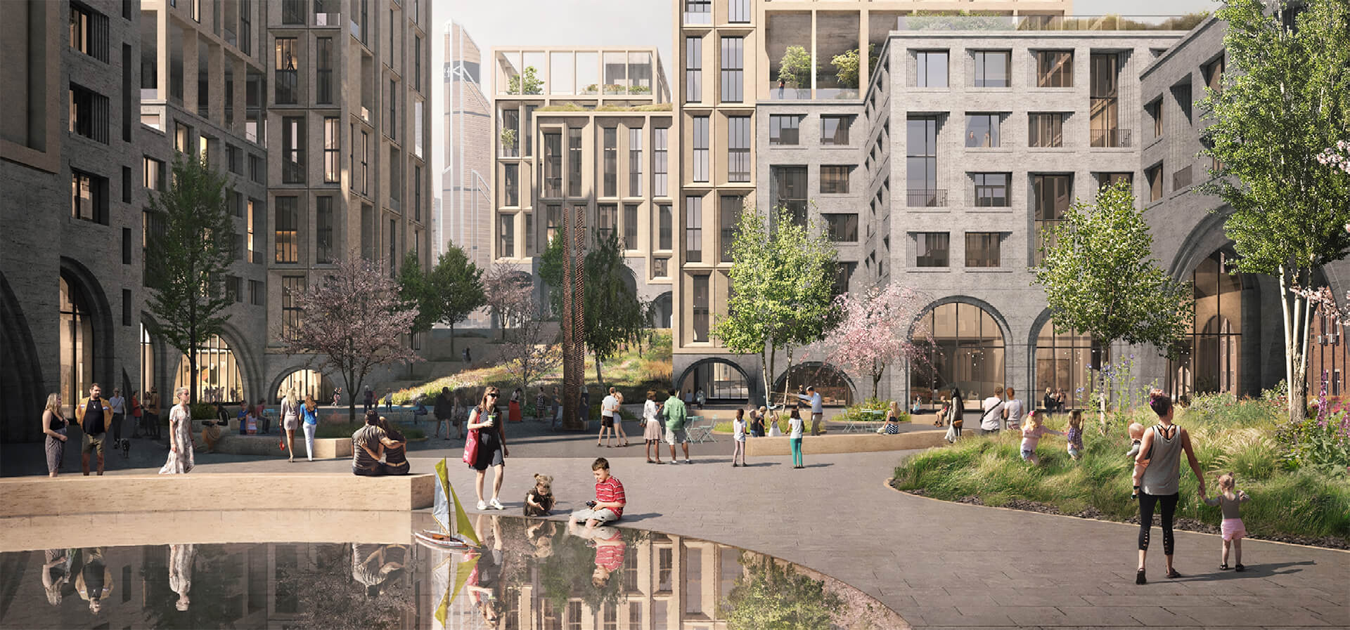 Пространство между домами оформлено в формате уличной городской гостиной: здесь можно наслаждаться прогулками и медитацией, расслабляться в дизайнерских ландшафтных скверах и под тенистыми деревьями, создающими атмосферу уединенной безмятежности. Для детей предусмотрены несколько игровых площадок, подходящих для разных возрастных групп.